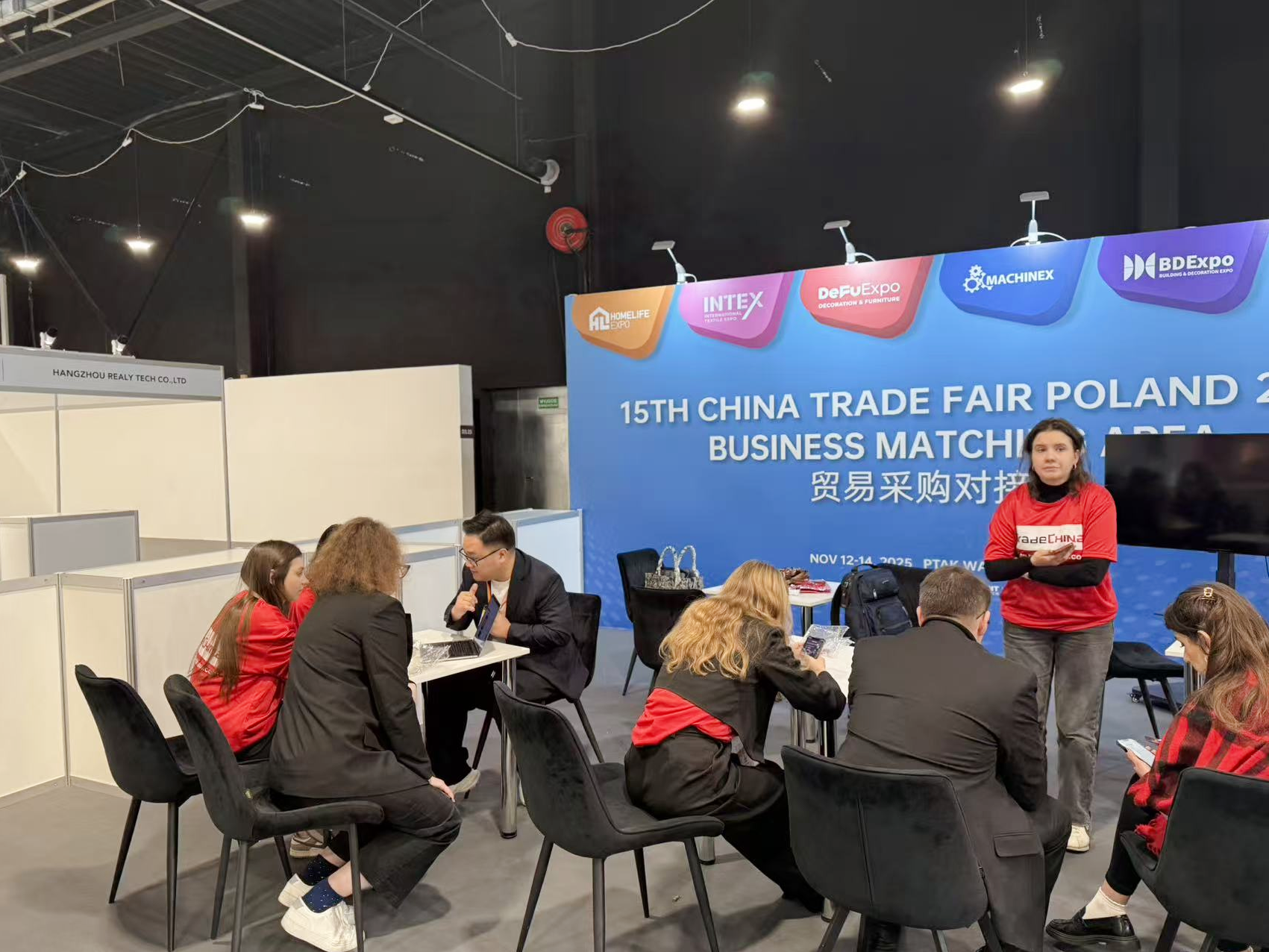 在为期三天的展会中,波兰大买家对接会作为重点同期活动,受到买卖家的一致好评。本次活动共促成近100场高质量1V1商洽对接,为参展企业与欧洲地区头部买家构建了一个高效、精准且务实的合作对接平台。现场气氛热烈,洽谈桌几乎座无虚席。来自欧洲多个国家和地区的重量级采购商齐聚一堂,其中包括Heidelbergmaterials、Instal Kraków S.A.、Abazur、PrescotLED、OMNIRES、Kuchinox、AGAS Sp. z o.o.、AMEX-BĄCZEK等大买家,他们的积极参与和强烈采购意向,极大提升了展会实效性与行业影响力,真正实现了展商与买家的“双向奔赴”。