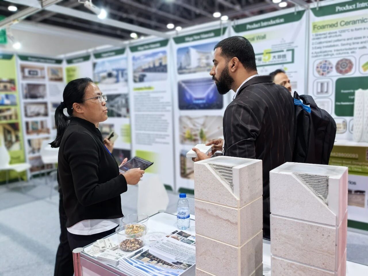 在为期三天的展会中,迪拜大买家对接采购会以强劲势头燃爆全场,成为展会焦点。超300场1V1商贸洽谈,为参展企业与中东知名买家搭建了高效务实的合作平台。包括FOUR STARS CERAMIC & SANITARY、KANZ AL BAHAR、AL AREESHA 、TOWN HOUSE 、STAR TRADING、RISEWAY TRADING、ZUBER AMJAD、DIAMOND VALLEY、CRYSTAL LINE、KGM BUILDERS、KGM ASSOCIATES、RBIC BUILDING、SRM 、GALFAR AL MISNAD、BIN DHAEN、SAROOJ CONSTRUCTION、PETROFAC、UNIQUE CONSTRUCTION、GRID REAL ESTATE DEVELOPMENT、BINGHATTI DEVELOPERS FZO、DALMA HOMES REAL ESTATE、DUBAI DEVELOPMENTS、GLOBAL LAND REAL ESTATE LLC、EMAAR INDUSTRIES LLC等在内的迪拜重量级采购商悉数到场,覆盖建筑、酒店、工程、家居、零售等多个领域。这些买家均带着明确的采购清单和合作意向,与中国供应商的一对一洽谈环节中,双方深入探讨合作机会,从产品细节到合作模式,从市场需求到技术应用,每一处都交流得细致入微。